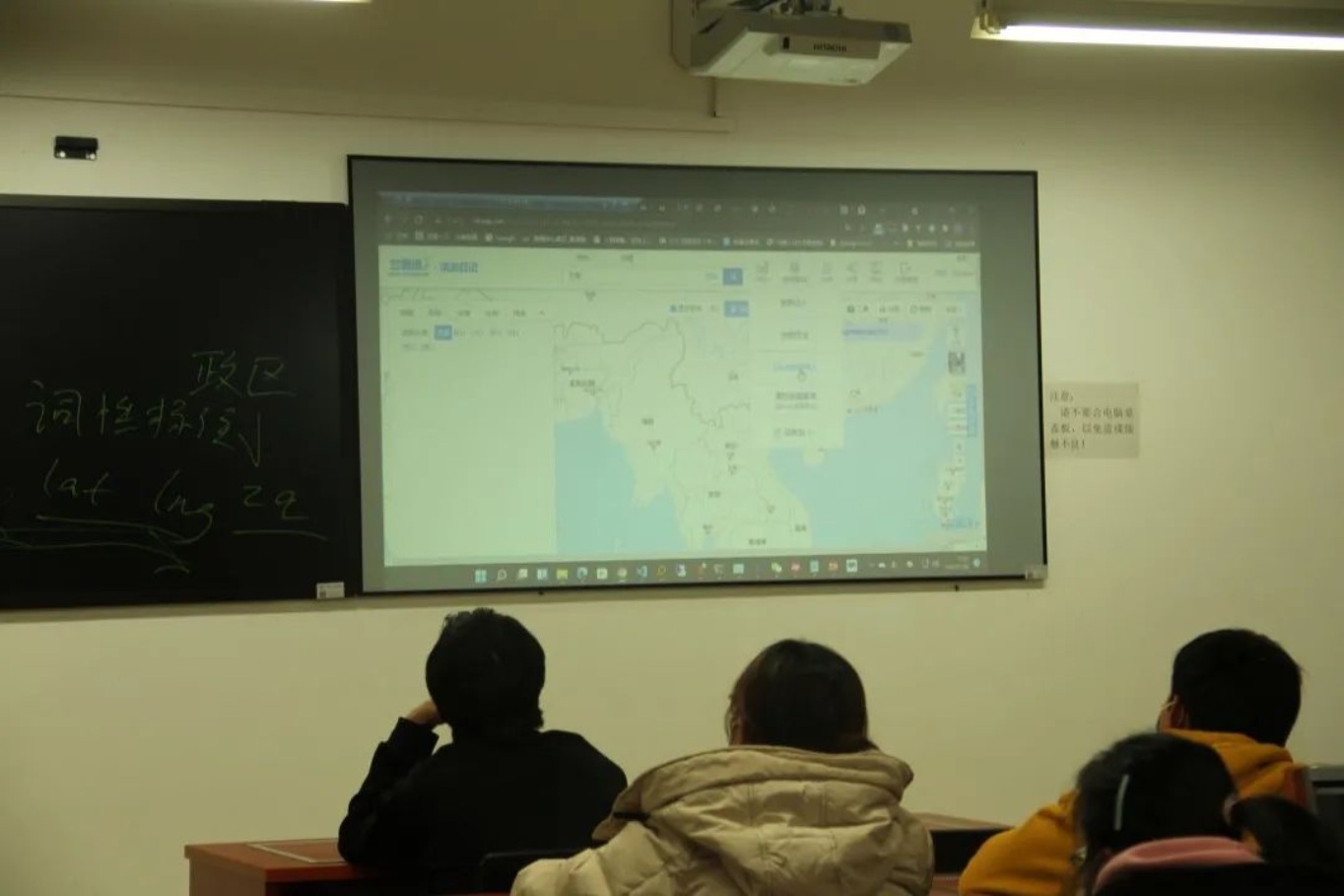 随后,同学们前往403实验室,学习语言信息处理的相关知识,并尝试完成《徐霞客游记》地理可视化的部分环节。