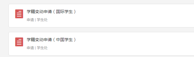 2.根据身份类别选择学籍变动申请(国际学生)、学籍变动申请(中国学生)。